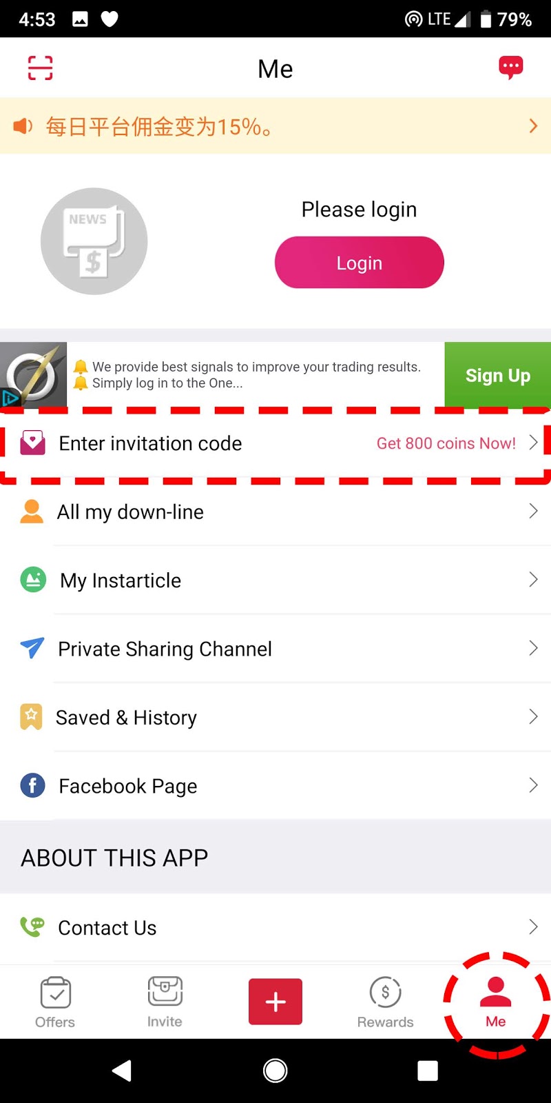 Seterusnya anda pergi ke bahagian ME kemudian anda tekan Enter Invitation Code dan masukkan 457488 bagi memperoleh 8000 coins terawal. Banyak tu kan. Jadi jangan lupa masukkan invitation code tersebut.