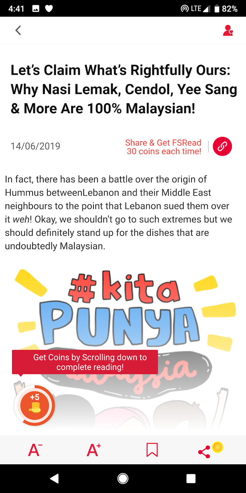 Setiap artikel yang anda baca, anda diberi 5 coins dan tiada had untuk anda berapa banyak artikel pun dalam masa sehari. Anda rajin membaca, anda peroleh lebih.